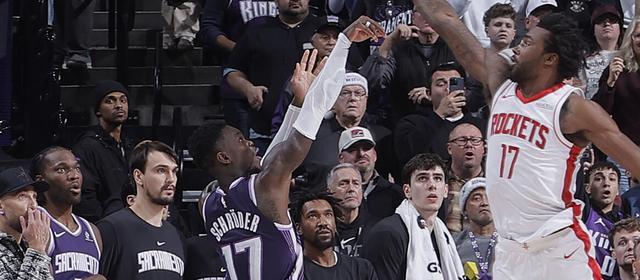 丹尼斯-施罗德在加时赛最后2.2秒轰进三分准绝杀,全场贡献24分7篮板10助攻为国王逆转斩获首功。