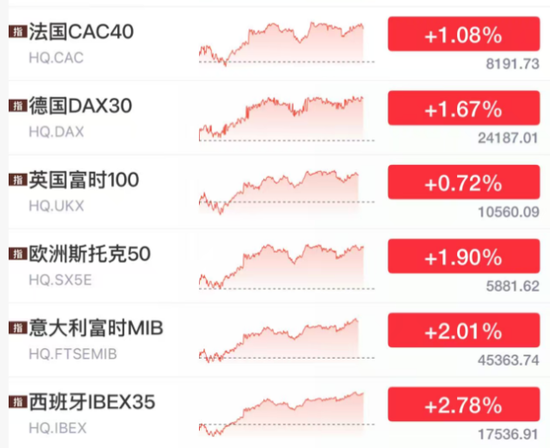 欧洲方面,也是大举反弹。